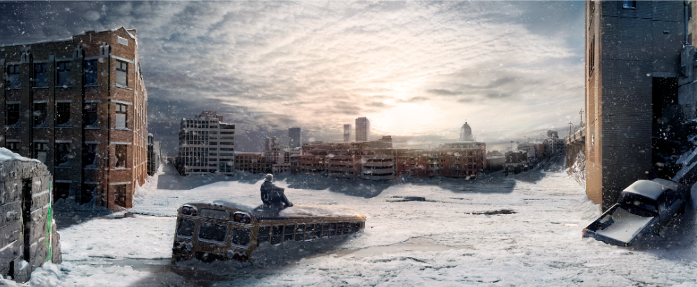 In this two-part tutorial, we will demonstrate how to create a panoramic post-apocalyptic photo manipulation in Photoshop. In part 1 we will explain how to shoot the needed photos, how to make batch adjustments in Camera Raw, automatic alignment and merging, and then how to correct the perspective. In part 2 we will show how to use this panoramic image to create a snowy, post apocalyptic photo manipulation. Let’s get started!